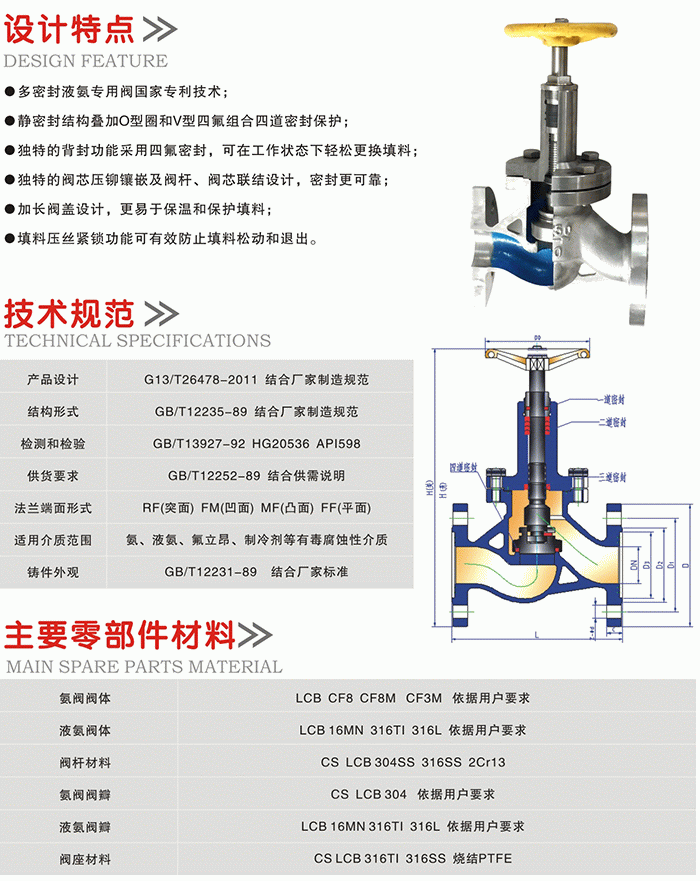 液氨截止閥特點(diǎn)、規(guī)范、材料: