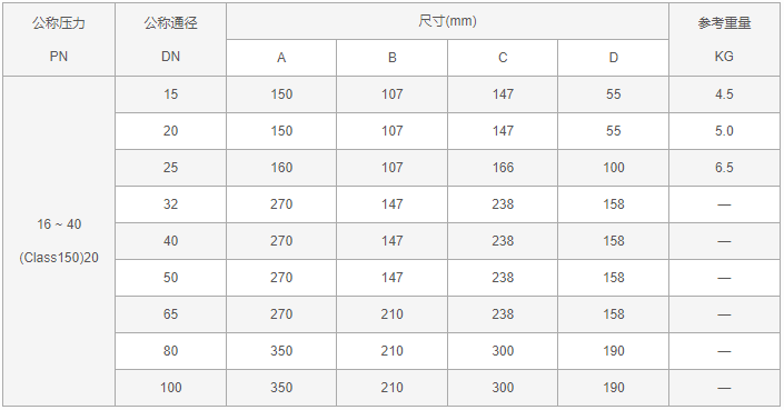 不銹鋼杠桿浮球式疏水閥外形尺寸表: