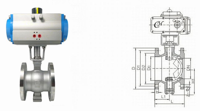 氣動V型法蘭球閥外形結(jié)構(gòu)圖: