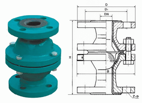 浮球式襯膠止回閥外形結(jié)構(gòu)圖: