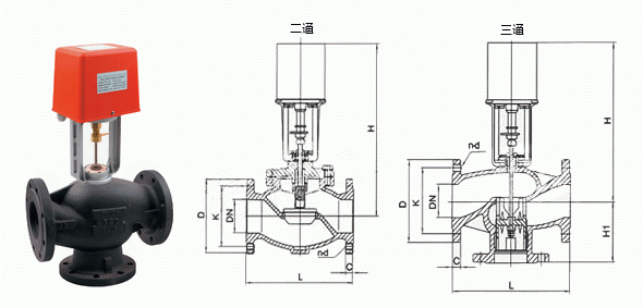 電動(dòng)三通閥外形結(jié)構(gòu)圖: