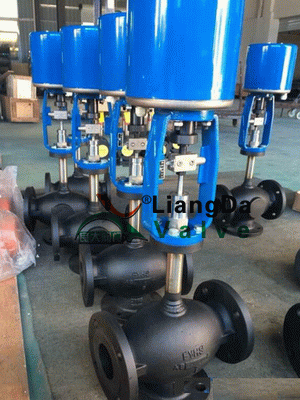 電動(dòng)三通閥配以電子驅(qū)動(dòng)控制裝置后,能調(diào)節(jié)蒸汽或冷、熱水的流量,廣泛應(yīng)用于中央空調(diào)、采暖、水處理、工業(yè)的流體控制。驅(qū)動(dòng)器是由可逆同步馬達(dá)驅(qū)動(dòng),并帶磁性離合器。馬達(dá)通過(guò)馬達(dá)轉(zhuǎn)子與離合器所產(chǎn)生的磁性作用,能在停頓的情況下產(chǎn)生穩(wěn)定的扭矩。故此當(dāng)馬達(dá)沒(méi)有電流通過(guò)時(shí)能穩(wěn)定地停頓在任何一點(diǎn),當(dāng)閥門全開(kāi)或全關(guān)時(shí)磁離合器分離,停止調(diào)節(jié)。驅(qū)動(dòng)器的遞增式或比例式控制器所發(fā)訊號(hào)能使馬達(dá)順時(shí)轉(zhuǎn)動(dòng)或逆時(shí)轉(zhuǎn)動(dòng)。電動(dòng)三通閥產(chǎn)品實(shí)物圖: