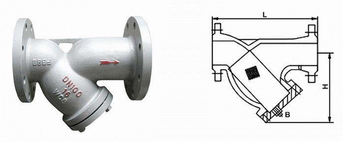 管道Y型過濾器外形結(jié)構(gòu)圖: