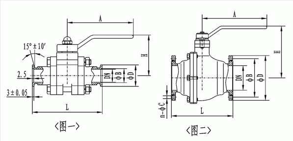 GU型真空(壓力)球閥連接尺寸: