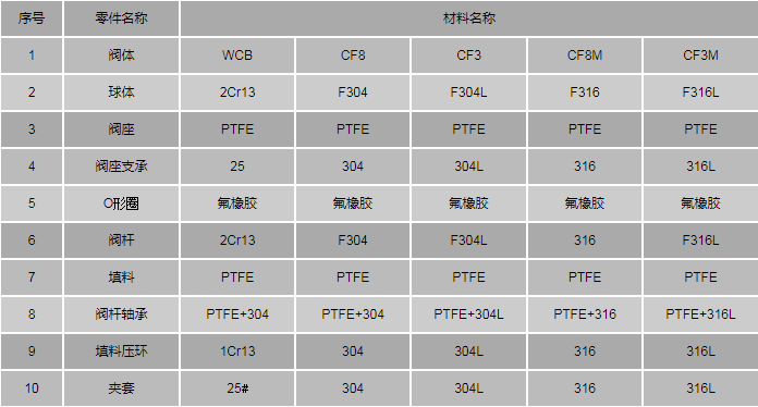 保溫球閥零件材料:
