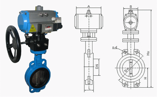 氣動襯膠蝶閥外形結(jié)構(gòu)圖: