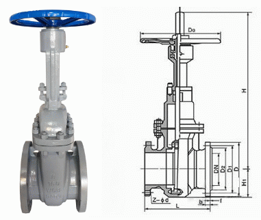碳鋼美標閘閥外形結(jié)構(gòu)圖: