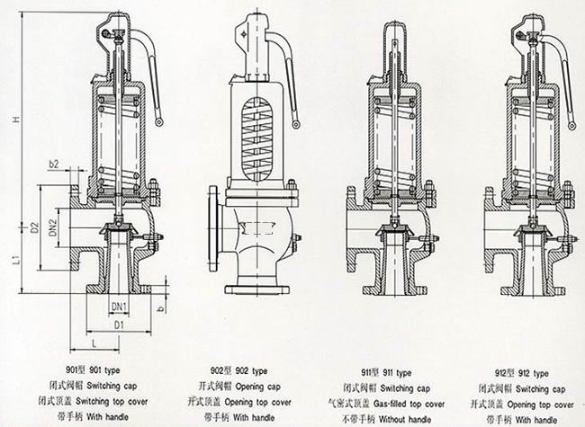 6、對(duì)空氣、60℃以上熱水或蒸汽等非危害介質(zhì),則應(yīng)采用帶板手安全閥;