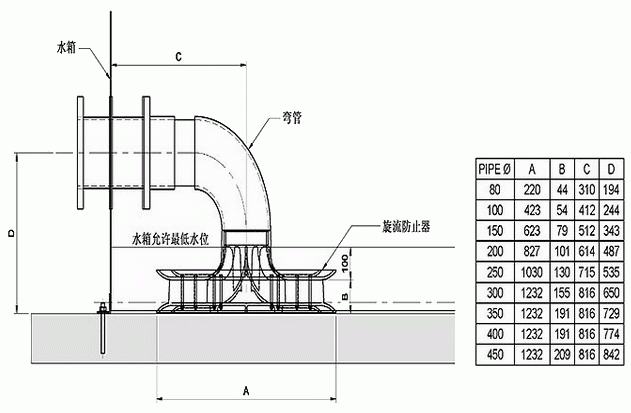 2、有效消除抽吸水過程中水箱(池)產(chǎn)生的旋流。