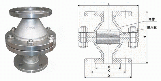 不銹鋼管道阻火器外形結(jié)構(gòu)圖: