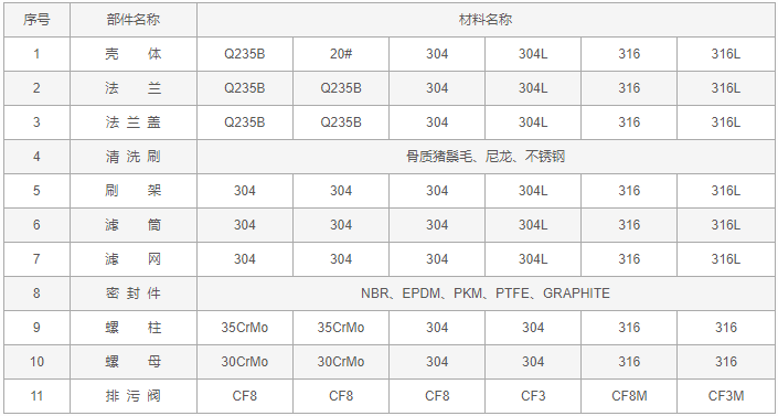 Y型全自動(dòng)清洗過(guò)濾器零件材料表: