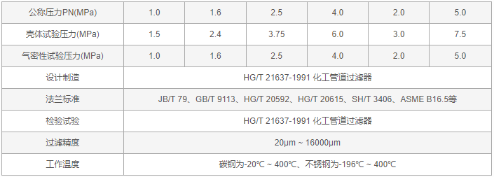 Y型過濾器技術(shù)規(guī)范表: