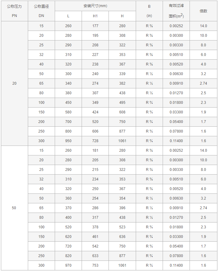 焊接Y型過濾器性能規(guī)范表: