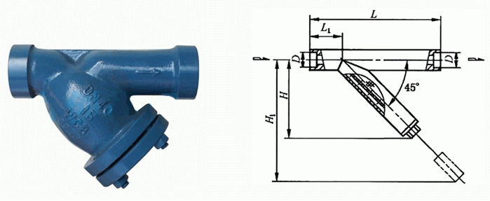 Y型承插焊過濾器外形結(jié)構(gòu)圖: