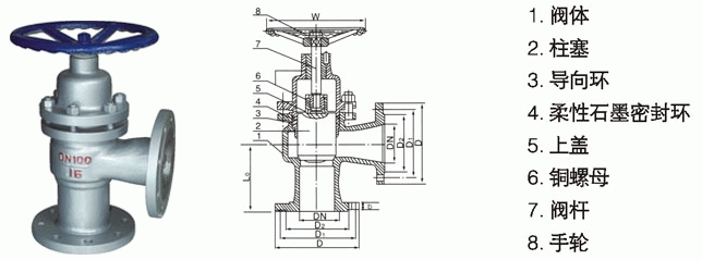 角式柱塞閥外形結(jié)構(gòu)圖: