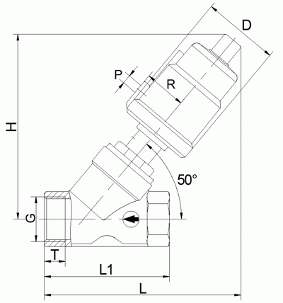 全不銹鋼螺紋氣動(dòng)角座閥連接尺寸: