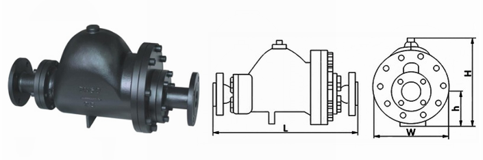 杠桿浮球式蒸汽疏水閥外形結(jié)構(gòu)圖: