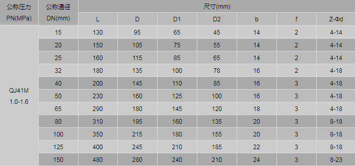 一體式法蘭球閥連接尺寸: