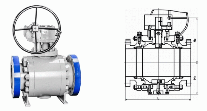 鍛鋼法蘭球閥外形結(jié)構(gòu)圖:
