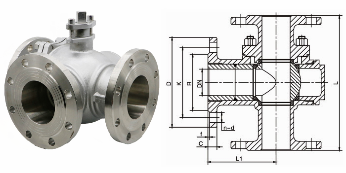T型法蘭三通球閥外形結(jié)構(gòu)圖: