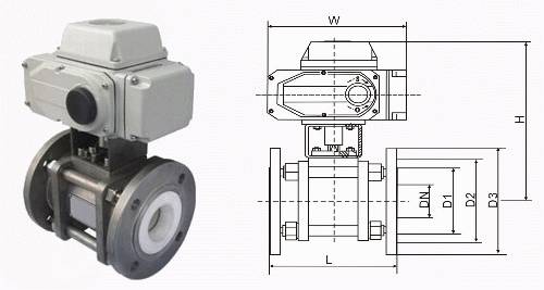 陶瓷電動球閥外形結(jié)構(gòu)圖: