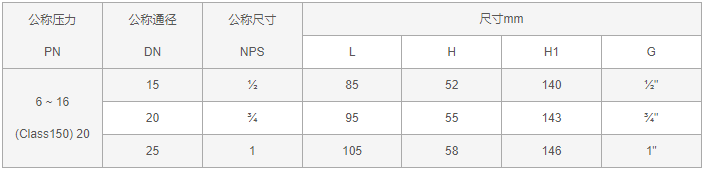 內(nèi)螺紋波紋管式減壓閥外形尺寸表:
