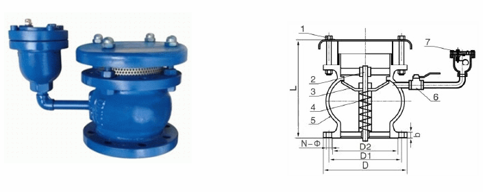注氣微排閥在突然停泵或關(guān)閉閥門或人為排水時(shí),管內(nèi)某些位置處的水柱可能產(chǎn)生分離,管內(nèi)出現(xiàn)真空(負(fù)壓),在負(fù)壓值達(dá)到-1kPa~3kPa時(shí),外界壓強(qiáng)大于內(nèi)部壓強(qiáng),吸氣閥內(nèi)部彈簧被外界空氣壓強(qiáng)和閥瓣自重?cái)D壓,彈簧上的閥瓣下移,吸氣口打開,空氣通過負(fù)壓吸氣閥的高速吸氣孔口從四周快速進(jìn)入,使管內(nèi)負(fù)壓降到很低,以保證管件和密封接口的安全性。