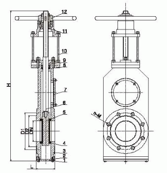 氣動(dòng)陶瓷單閘板閥外形結(jié)構(gòu)圖: