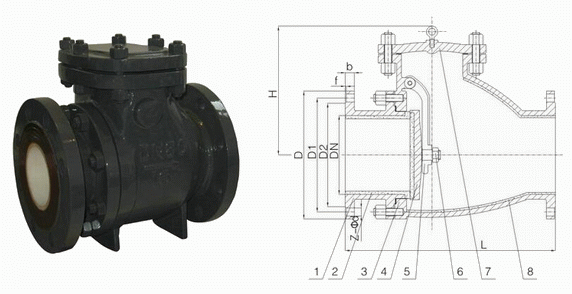 H44TC旋啟式陶瓷止回閥又稱陶瓷單向閥或陶瓷逆止閥,其作用是防止管路中的介質(zhì)倒流,一般適用于含有固體顆粒的磨損性和沖刷性比較強(qiáng)的介質(zhì)。旋啟式陶瓷止回閥的閥瓣和閥座及流體通道均內(nèi)襯高性能增韌結(jié)構(gòu)陶瓷材料,具有極好的耐磨損和耐沖刷性能。在管道中可任意角度安裝。旋啟式陶瓷止回閥標(biāo)準(zhǔn)規(guī)范:
