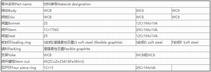 高溫高壓電動(dòng)閘閥零件材料: