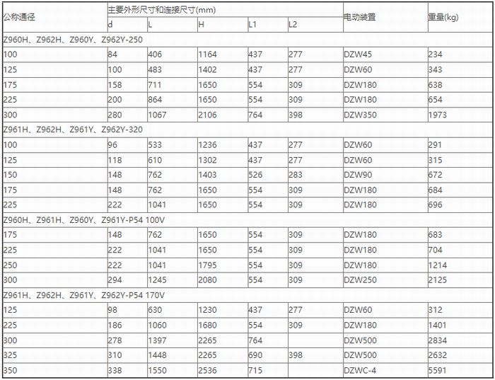 高溫高壓電動(dòng)閘閥外形尺寸表: