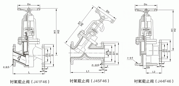 襯氟截止閥外形結(jié)構(gòu)圖: