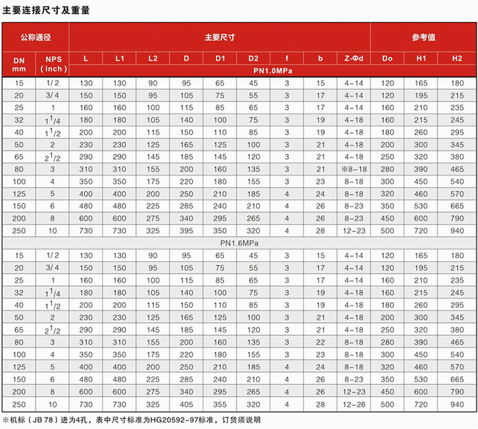 襯氟截止閥連接尺寸: