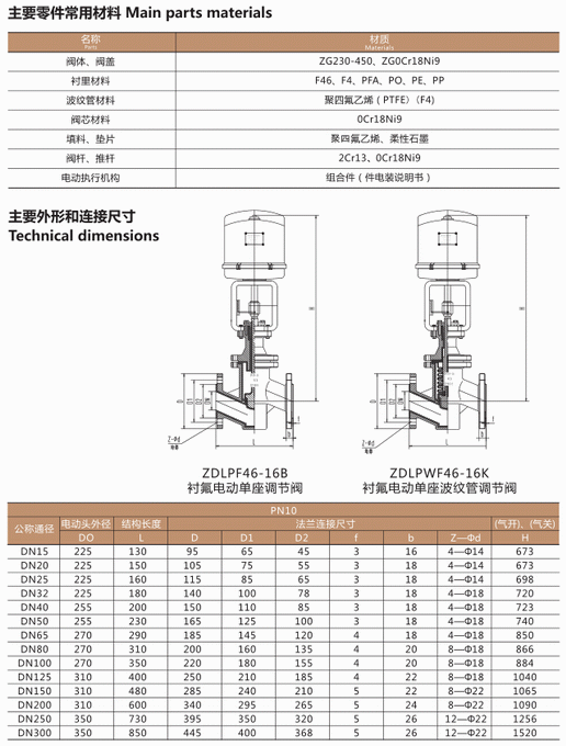 電動(dòng)襯氟調(diào)節(jié)閥零件材料、外形和連接尺寸: