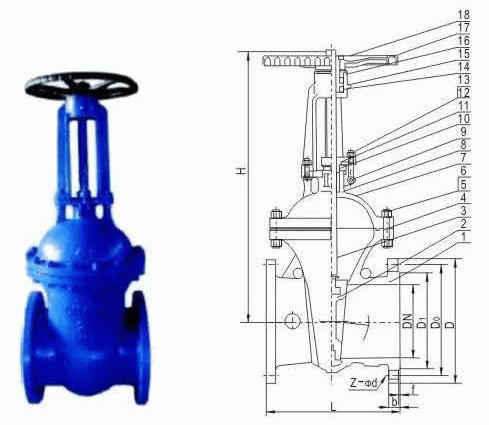 F5德標閘閥外形結(jié)構(gòu)圖: