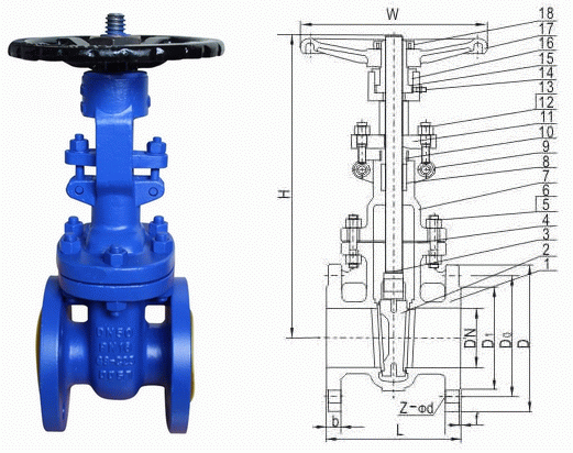 F4德標(biāo)閘閥外形結(jié)構(gòu)圖: