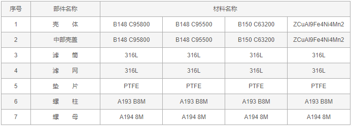 鎳鋁青銅Y型過(guò)濾器零件材料: