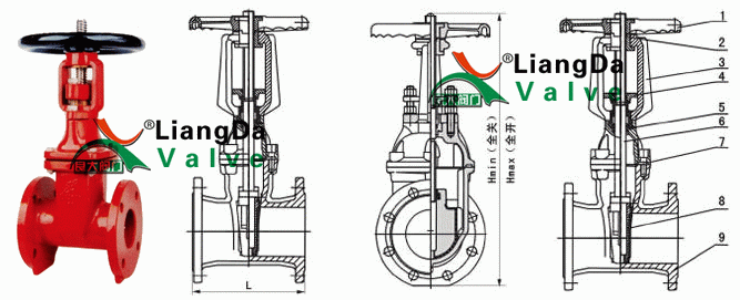 明桿消防閘閥結(jié)構(gòu)圖: