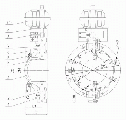 氣動圓頂閥外形結(jié)構(gòu)圖: