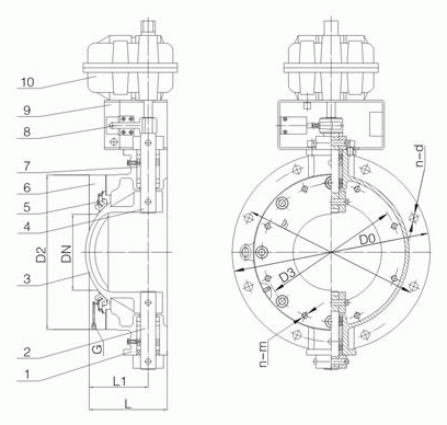 圓頂閥閥芯是一個(gè)球面圓頂,圓頂閥在開關(guān)過程中,閥芯與橡膠密封圈間保持有約2mm的間隙,使閥芯與橡膠密封圈可以以無接觸的方式運(yùn)動(dòng),目的是使閥芯與密封圈之間不產(chǎn)生摩擦,減少磨損。圓頂閥的氣動(dòng)執(zhí)行元件為全封閉回轉(zhuǎn)推桿式氣缸,直接驅(qū)動(dòng)圓頂閥轉(zhuǎn)動(dòng),有效地防止了灰塵進(jìn)入其中造成磨損、泄漏等現(xiàn)象的發(fā)生。當(dāng)圓頂閥處于關(guān)閉狀態(tài)時(shí),橡膠密封圈充氣,膨脹緊緊地壓在球面圓頂閥芯上,從而形成一個(gè)非常可靠的密封環(huán)帶,阻止了管道內(nèi)物料的流動(dòng)。當(dāng)圓頂閥開啟時(shí),橡膠密封圈排氣,圓頂閥閥芯開啟,此時(shí)閥門打開。