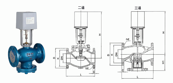 電動兩通閥外形結(jié)構(gòu)圖: