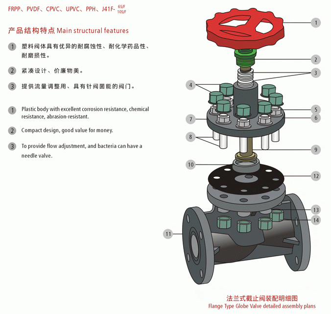塑料截止閥是使用最廣泛的一種閥門,它之所以廣受歡迎,是由于開閉過程中密封面之間摩擦力小,比較耐用,開啟高度不大,制造容易,維修方便,不僅適用于中、低壓,而且適用于高壓RPP塑料截止閥的閉合原理是,依靠閥杠壓力,使閥瓣密封面與閥座密封面緊密貼合,阻止介質流通。RPP塑料截止閥只許介質單向流動,安裝時有方向性。