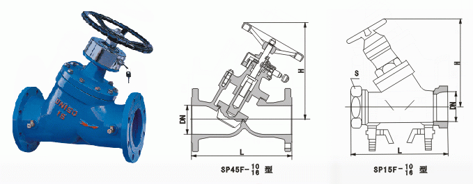 靜態(tài)平衡閥安裝示意和流量曲線圖: