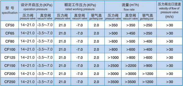 CF-ISO型高速透氣閥主要性能參數(shù):