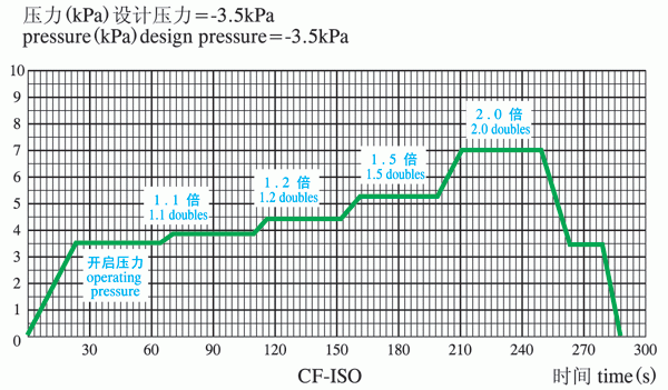 ISO15364標(biāo)準(zhǔn)規(guī)定:流量數(shù)據(jù)應(yīng)以曲線或表格方式給出,特別是在壓力閥開啟壓力的1.1、1.2、1.5倍和真空閥1.1、1.2、1.5、2.0倍的開啟點(diǎn),需在圖表上明確這些點(diǎn)的流量。