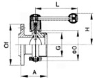 衛(wèi)生級一端法蘭一端螺紋蝶閥結構尺寸: