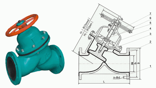 直流式襯膠隔膜閥外形結(jié)構(gòu)圖: