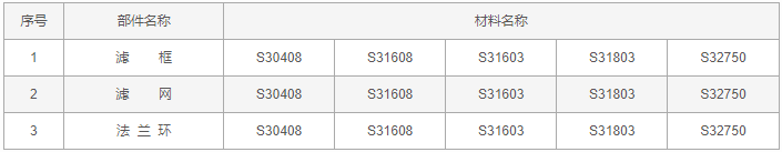 法蘭平頂錐形過濾器零件材料: