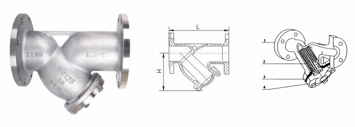 不銹鋼Y型過濾器外形結(jié)構(gòu)圖: