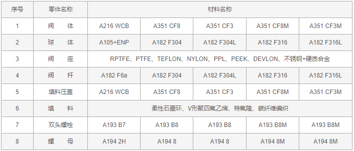 球形放料閥零件材料: